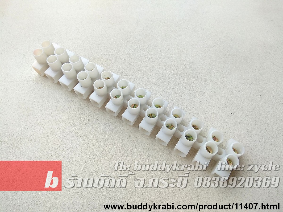 ลูกเต๋าต่อสายไฟ 1 แถว (6 คู่) 18 x 20 มม., รู 5 มม. สีขาว