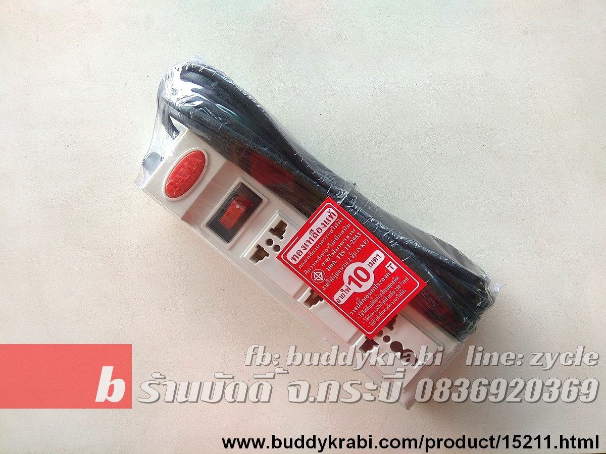รางปลั๊ก 1 x 3 ช่อง Bama 10 ม. 1 สวิทช์ ขาทองเหลือง