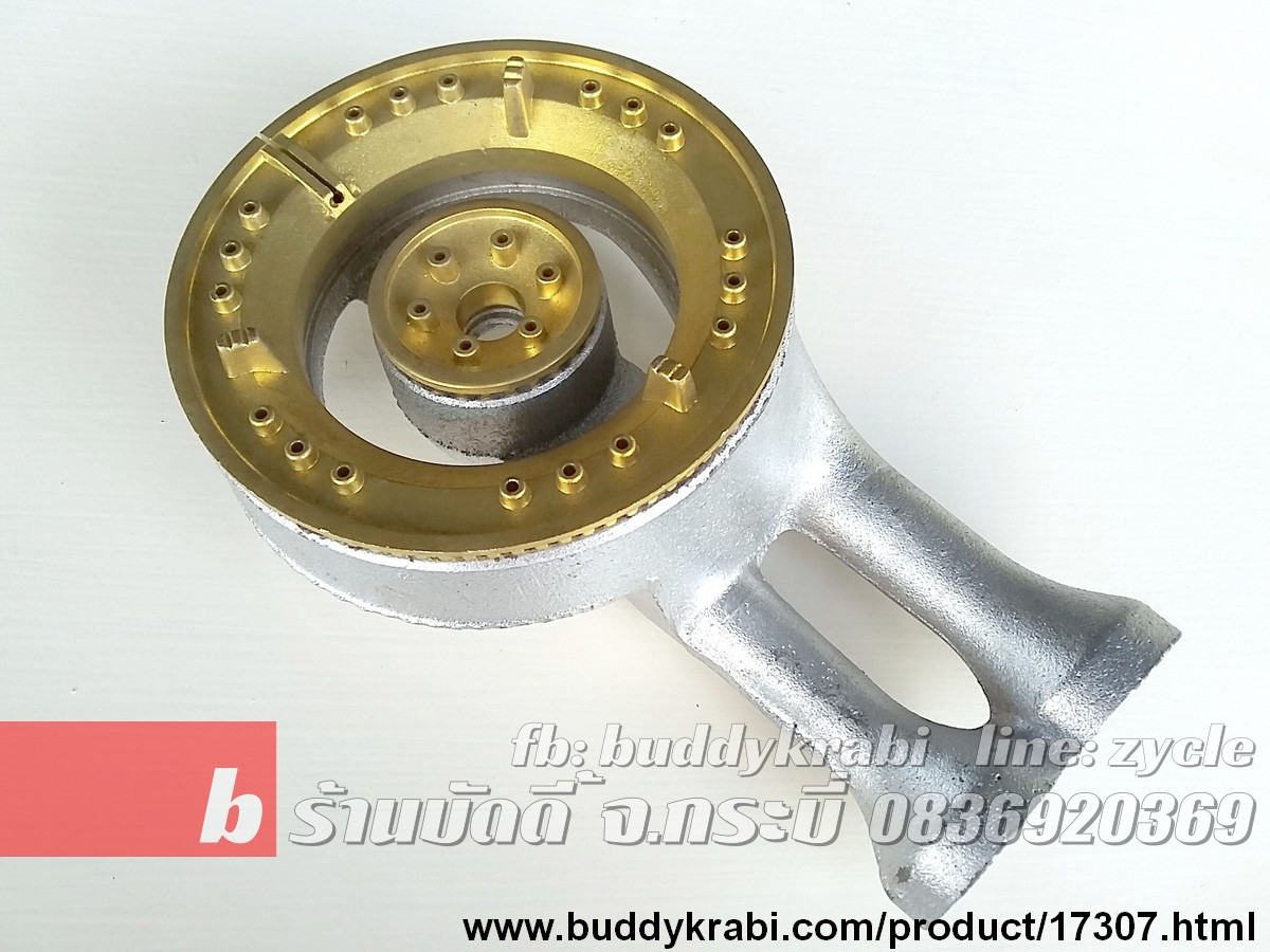หัวเตาแก๊สบ้านแบบเหล็กหล่อ ท่อคู่เบี่ยงขวา หัวเตา 120 มม. ทองเหลือง, พิมพ์ DS ข้างใต้