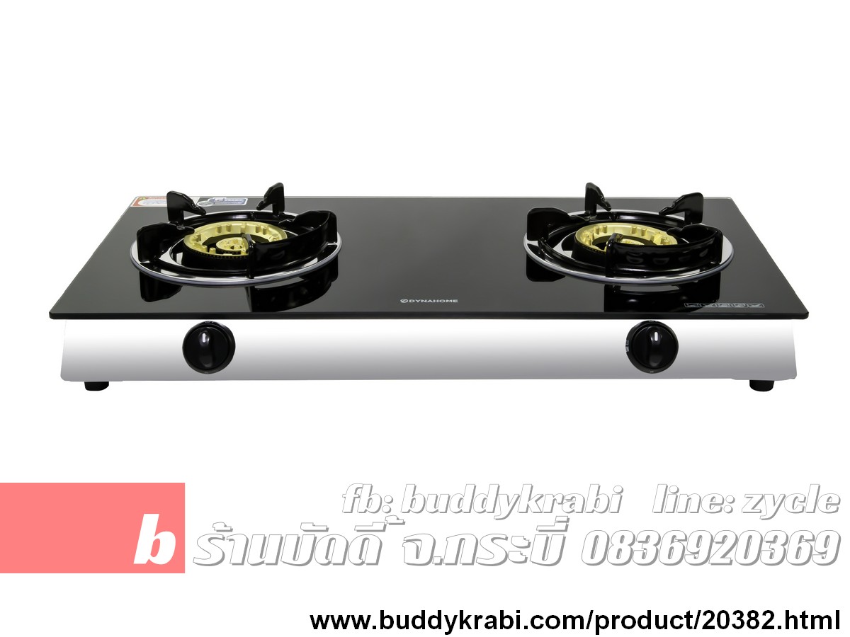 เตาแก๊สตั้งโต๊ะ (เตากล่อง) หัวคู่ DynaHome หัวเตา 120 มม. หน้ากว้างพิเศษ 77 ซม. ทองเหลือง หน้ากระจก DH-8718-F