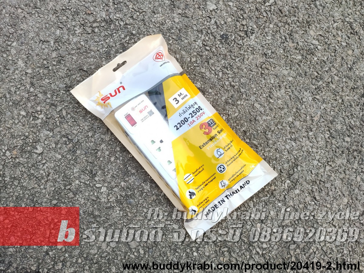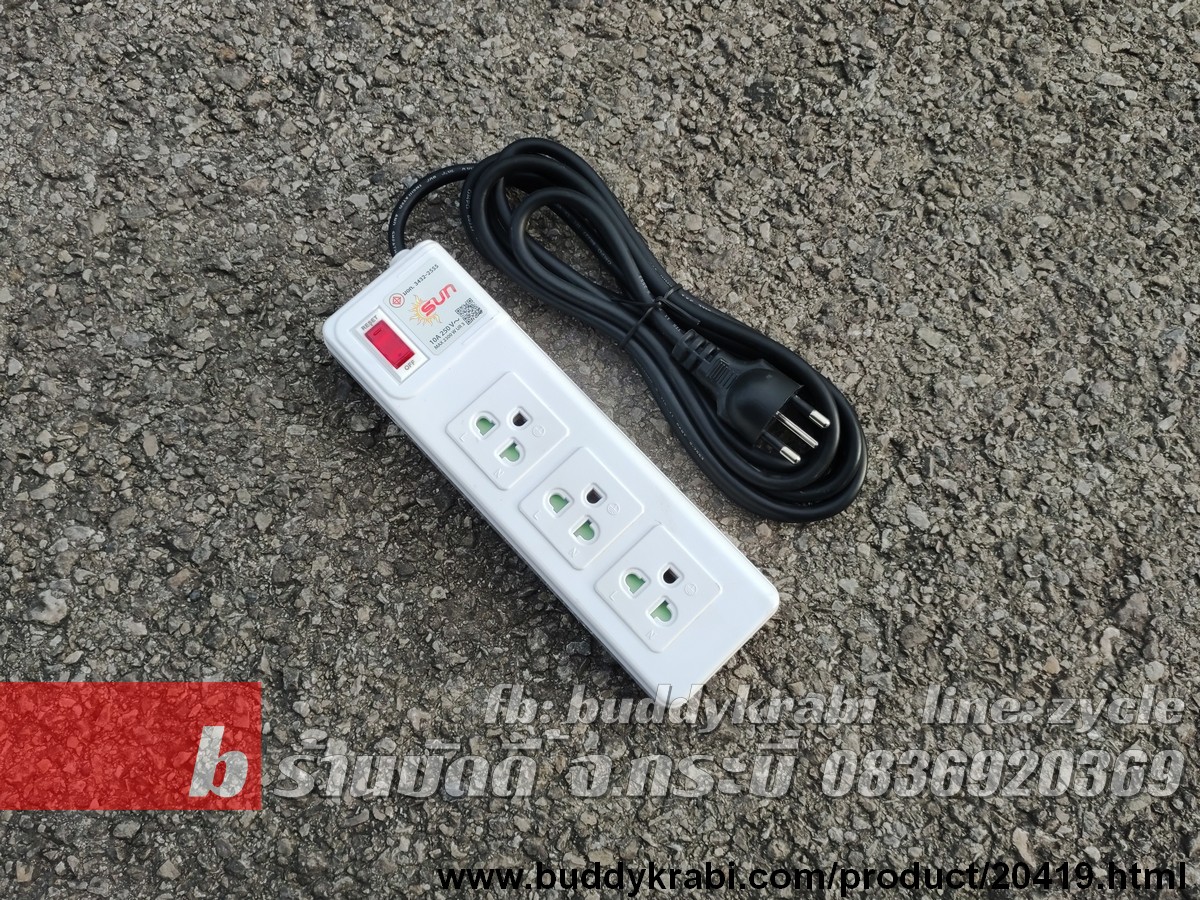 รางปลั๊ก 1 x 3 ช่อง Sun 3 ม. VCT 3 x 1 10A 2300W 1 สวิทช์ ขาทองเหลือง ST-313