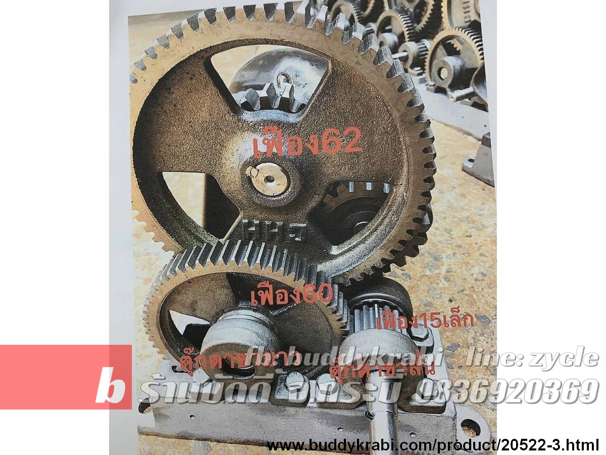 เฟืองเครื่องคั้นอ้อย+แกน CHH 15 ฟัน เส้นผ่านศูนย์กลาง 4.3 ซม. หนา 2.5 ซม., แกนยาว 13.5 ซม. เกลียวกว้าง 1.6 ซม.