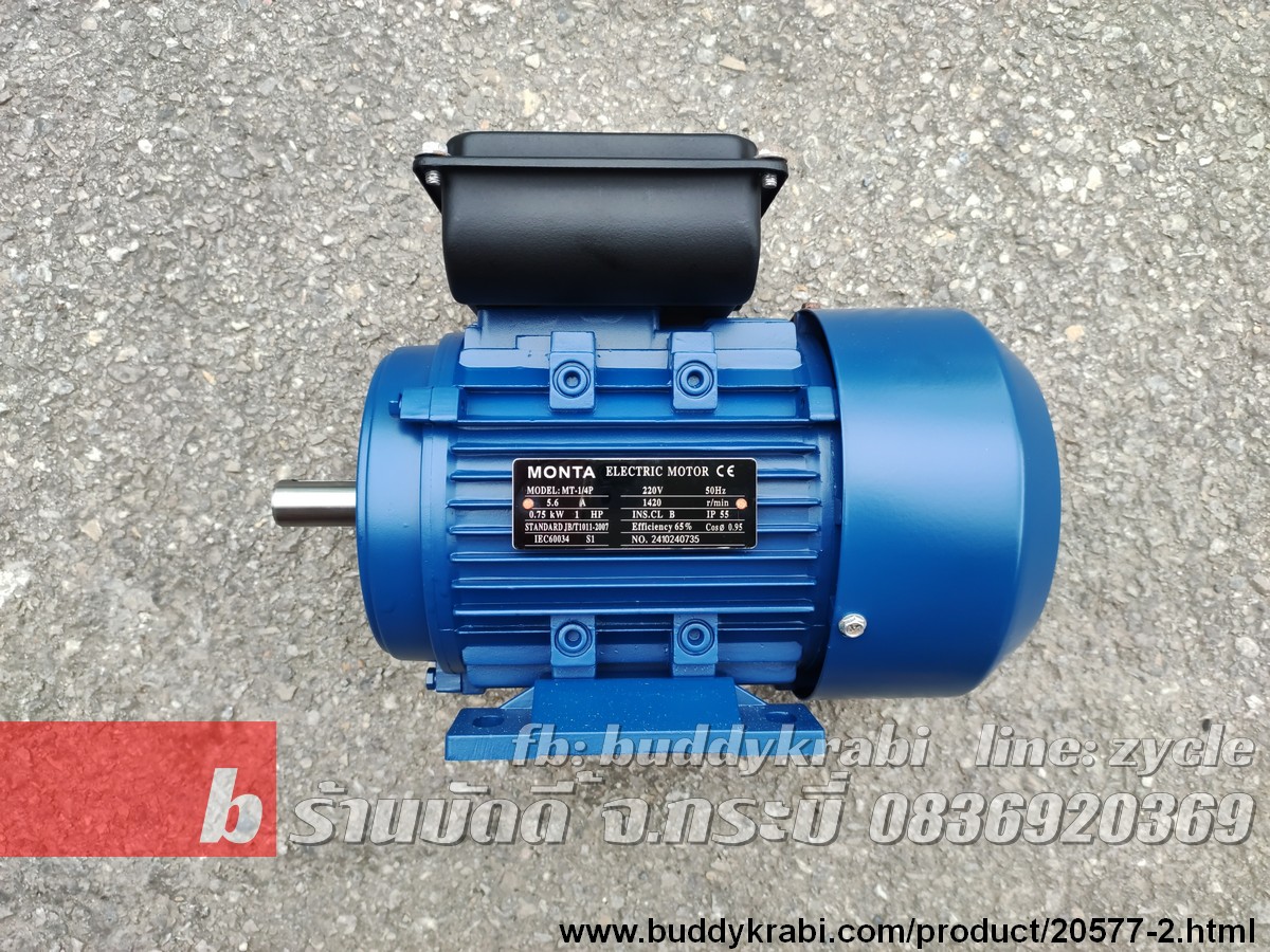 มอเตอร์ Monta 1.0 HP มู่เล่ย์ 1 ร่อง 2.5 นิ้ว แกน 19 มม. MT-1/4P สีน้ำเงิน