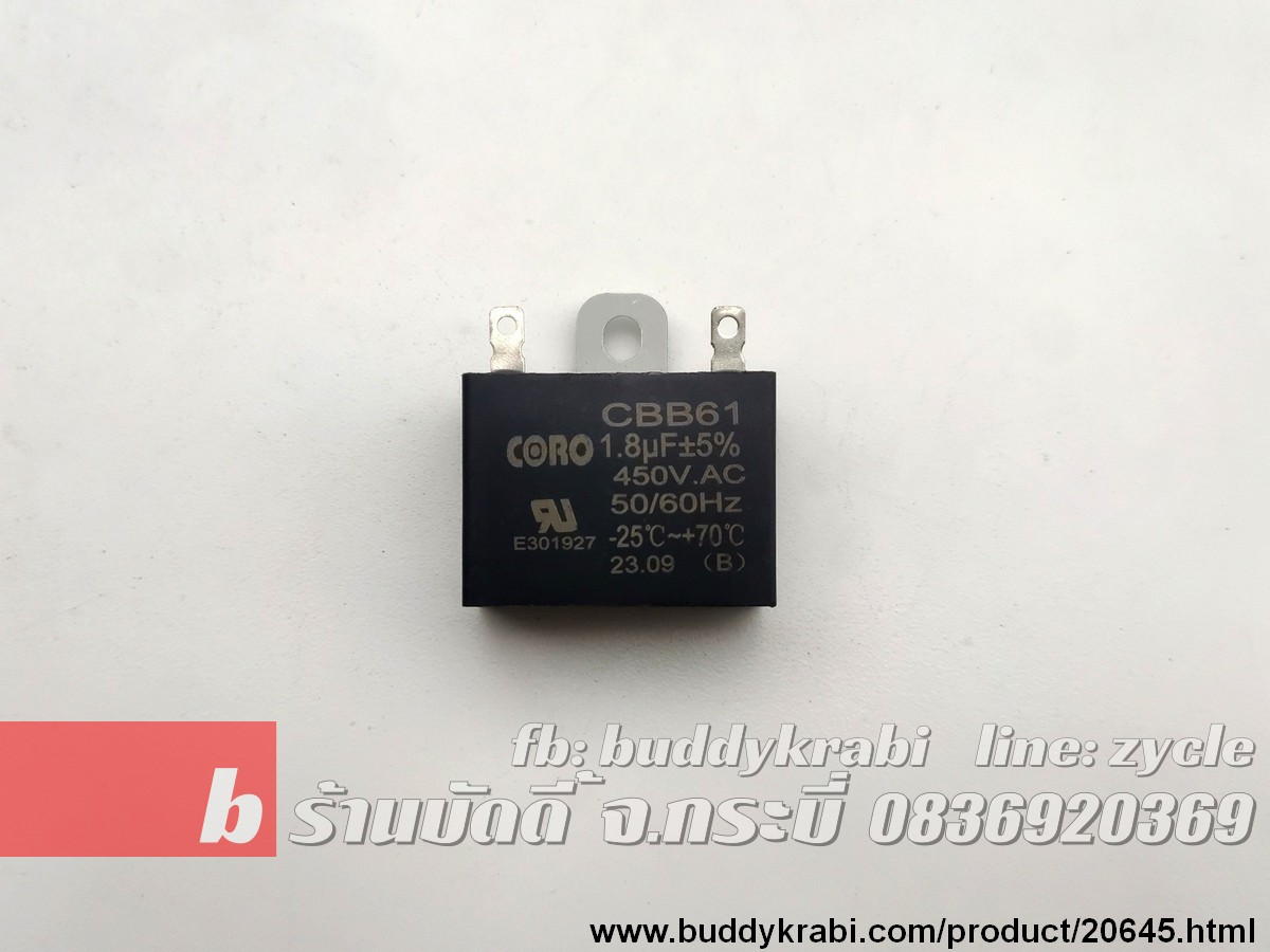 คาปาซิเตอร์พัดลม Coro 1.8MF 450V CBB61 สี่เหลี่ยม