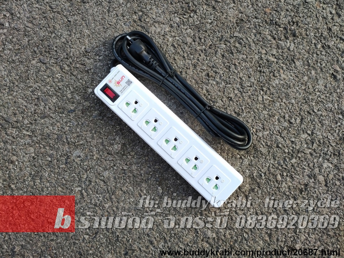 รางปลั๊ก 1 x 5 ช่อง Sun 3 ม. VCT 3 x 1 10A 2300W 1 สวิทช์ ขาทองเหลือง ST-513